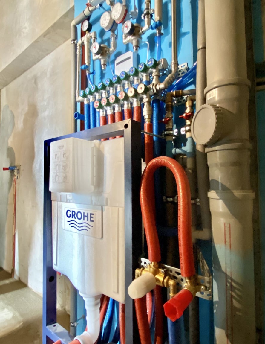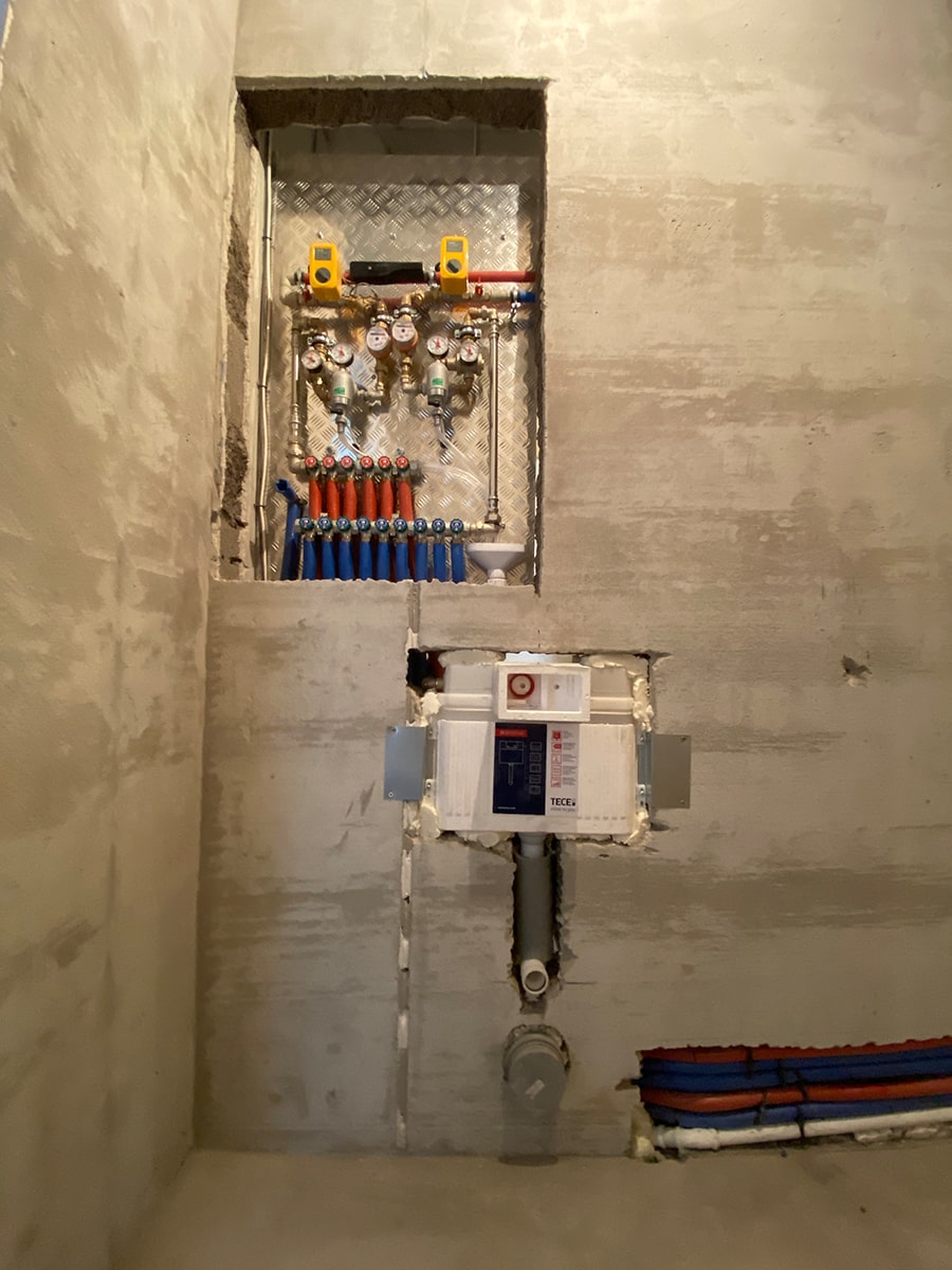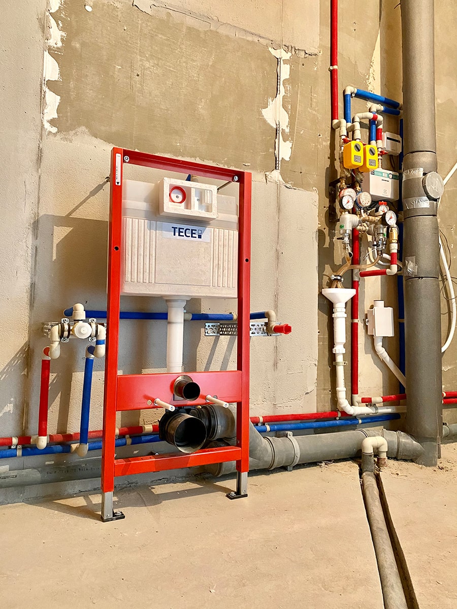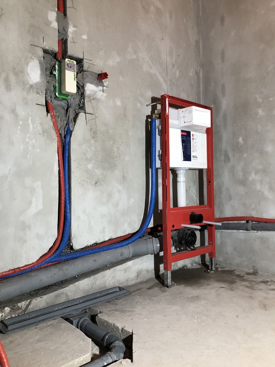 - Монтаж скрытых сантехнических систем (биде, инсталляций, умывальников, врезных боксов смесителей и т.д.).